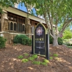 The Grace Church nave is located at the corner of Washington Street and Boulevard in Gainesville, Georgia.